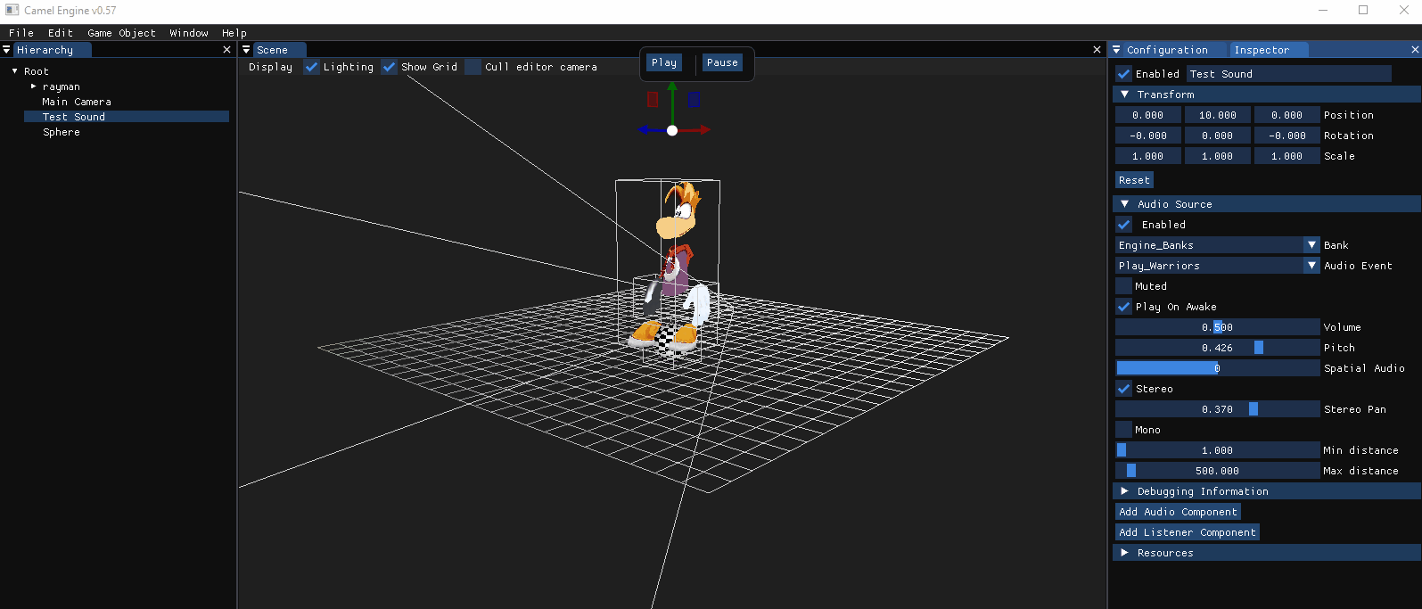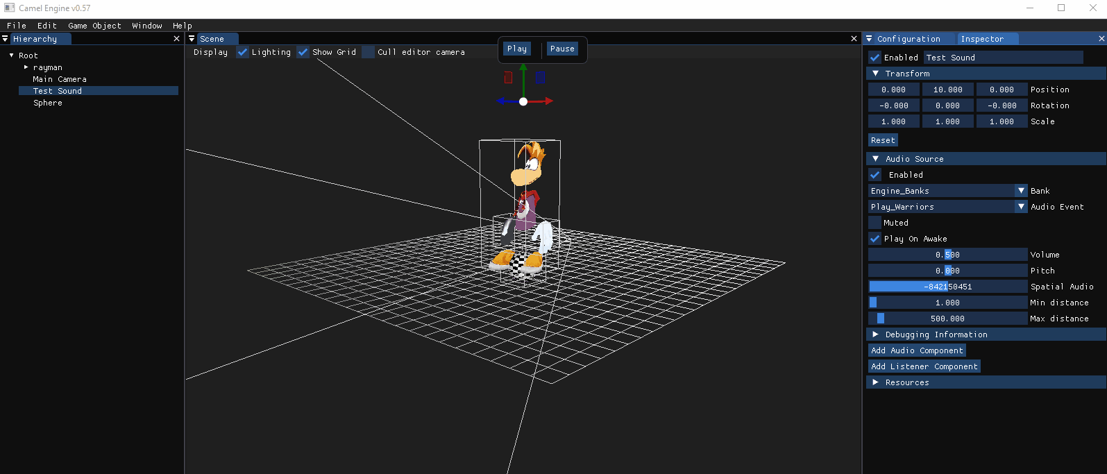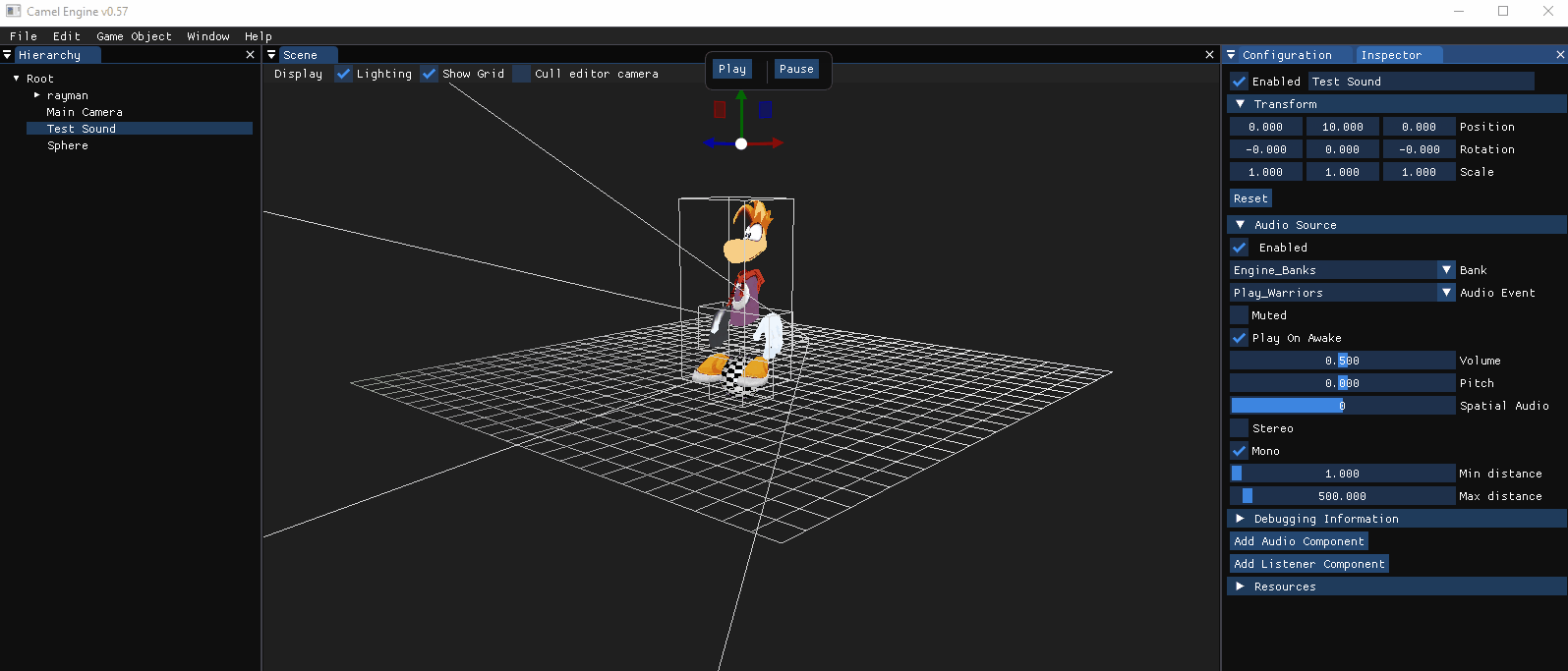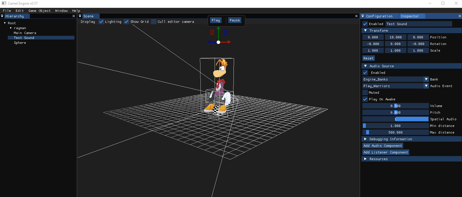 - With this component we can add it to a object to mark it as a Audio Emitter and it will reproduce audios if we add a AudioSource to it.
